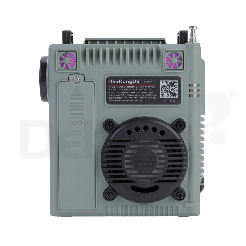 De HanRongDa HRD-A320 biedt multi-band ontvangst van FM, VHF, MW, SW en Airband maar kan ook gebruikt worden als Bluetooth speaker, TF-card player en als externe speaker van audio input.