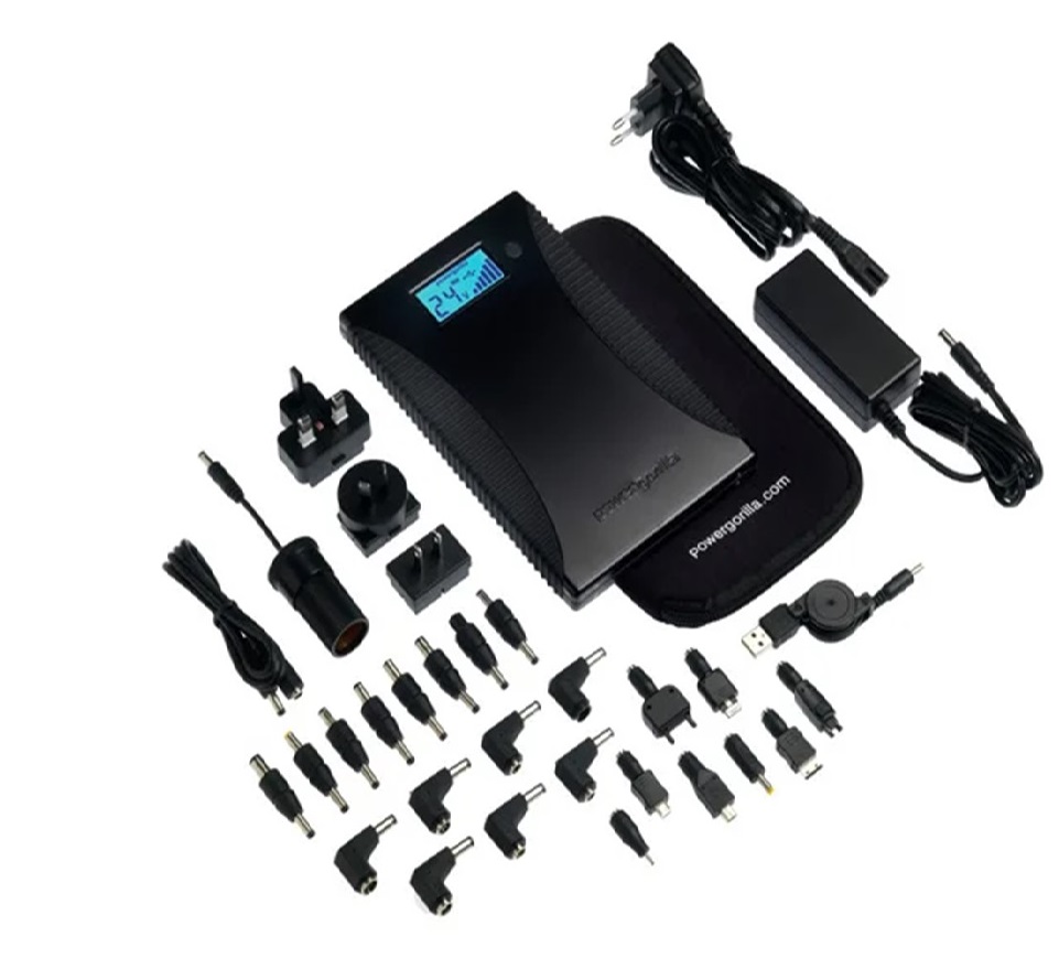 The powergorilla featured a multi-voltage functionality with outputs of 5V, 12V, 16V, 19V and 24V, so is capable of charging everything from a laptop down to a mobile phone. It also offers simultaneous charging from the 5V USB output (suitable for phones, iPods, head lamps & many more 5V devices) and the DC output (laptops, netbooks, SLR cameras & more).